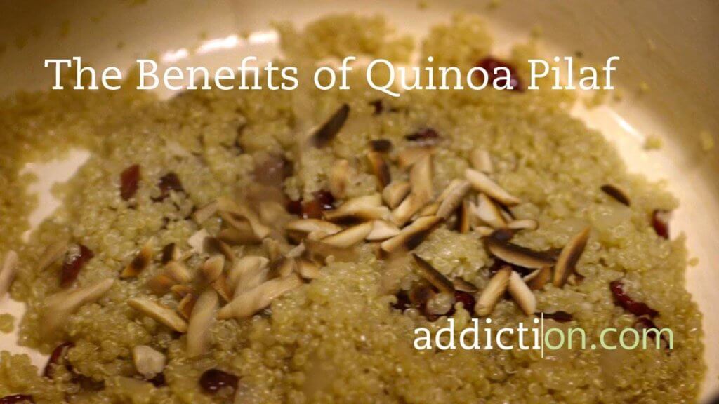 This Quinoa Pilaf is super easy, delicious, and an excellent source of protein from quinoa. Quinoa is a wonderful recovery food because it’s an excellent source of protein as well as fiber, phosphorous, magnesium, iron and calcium. It’s also gluten-free and easy to digest. Nutrition Calories 120 Total fat 4g Protein 4g Saturated fat 0g