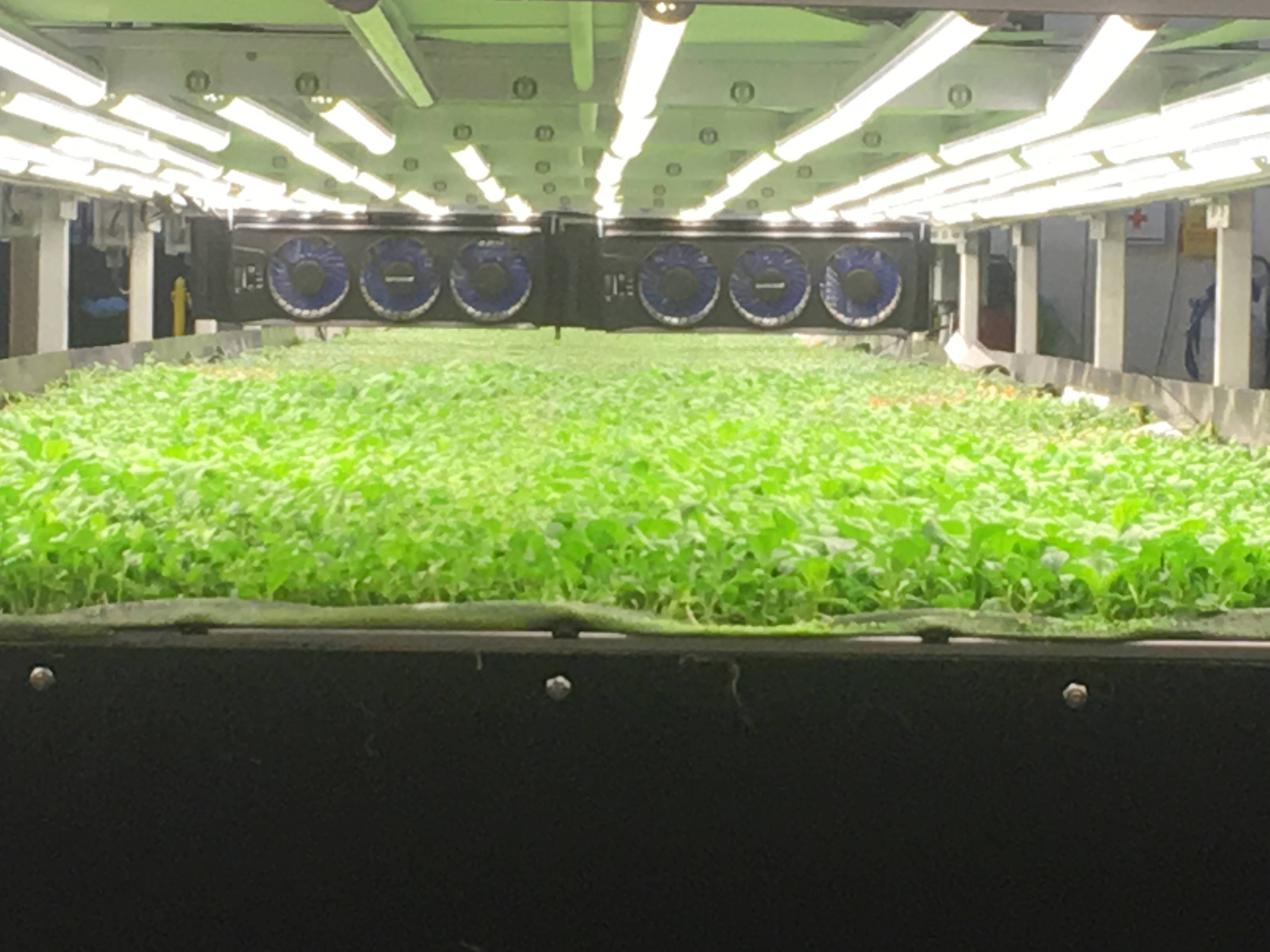 This week I had the pleasure of touring an AeroFarms facility in Newark, New Jersey. Founded by a former Professor at Cornell University (Go Big Red!), AeroFarms is a non-GMO, environmentally sustainable way to grow greens locally. Their modular, vertical growing system is adaptable, turning any building into a local farm (this one used to be a laser tag arena!). Their closed loop aeroponic system uses 40% less water and produces ~130 times more than greens grown outdoors in the field, yet they use the same seeds as farms and are grown in ideal conditions.