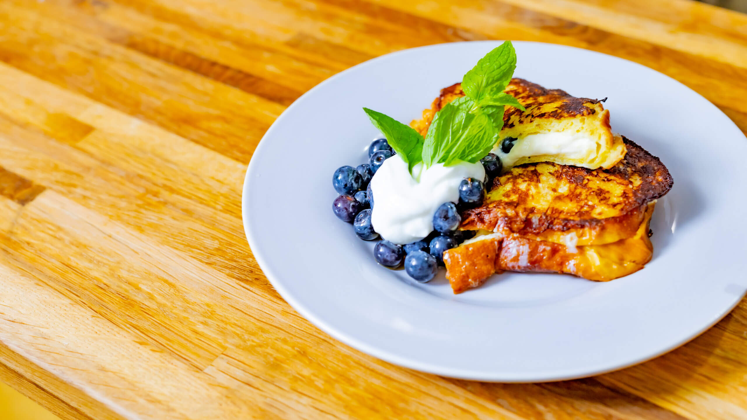 With Mother’s Day just around the corner, you can spoil your mom with a breakfast she won’t forget! Stuffed french toast, even though it looks and sounds a little fancy, is quite easy to make. Basically, we are going to make sandwiches with cream cheese and blueberries in the middle.
